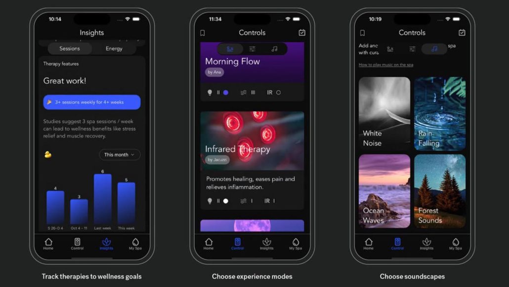 - Five immersive experience modes feature a unique coordinated blend of hydromassage, IR therapy, and lights
